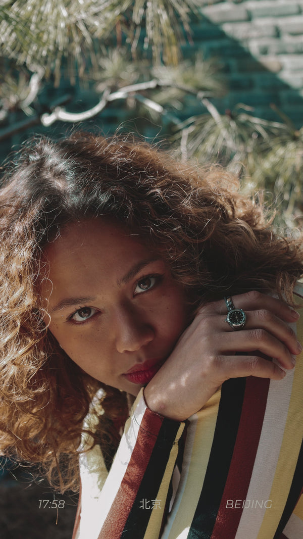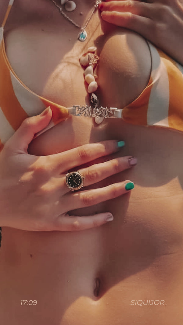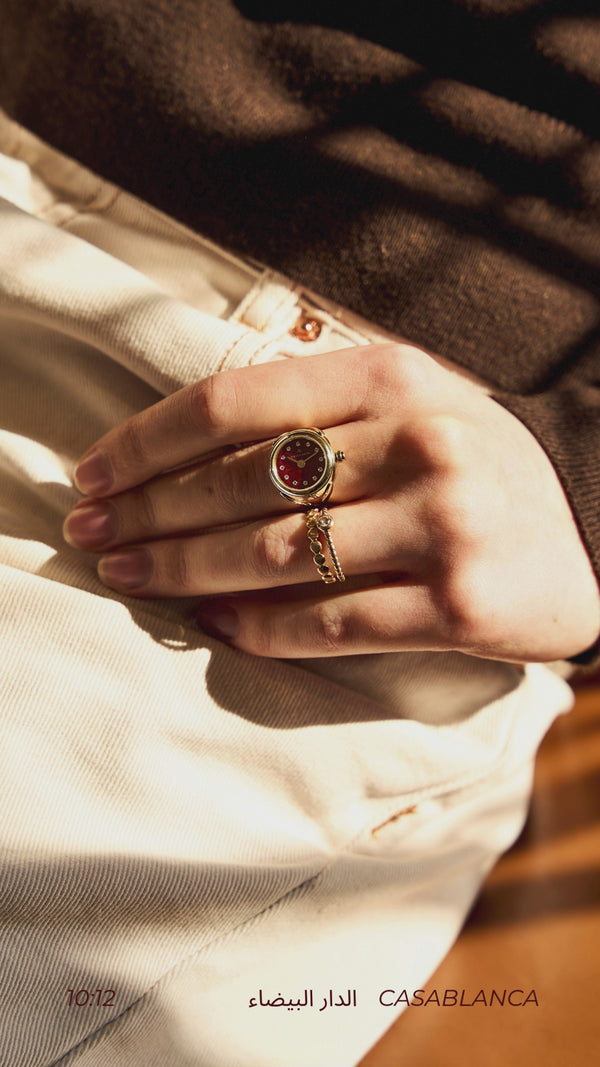 Étanche à 5 ATM, votre montre-bague résiste à l'usure quotidienne mais ne doit pas être immergée.